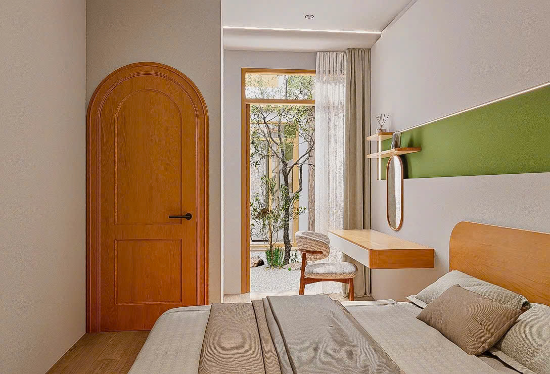 - Phòng Ngủ – Chốn Bồng Bềnh Bình Yên: Các phòng ngủ là nơi trú ẩn lý tưởng, nơi bạn có thể thư giãn hoàn toàn. Nội thất được tối giản hóa, tinh tế với gam màu dịu nhẹ, kết hợp cùng ánh sáng tự nhiên chan hòa, hứa hẹn những giấc ngủ an lành.