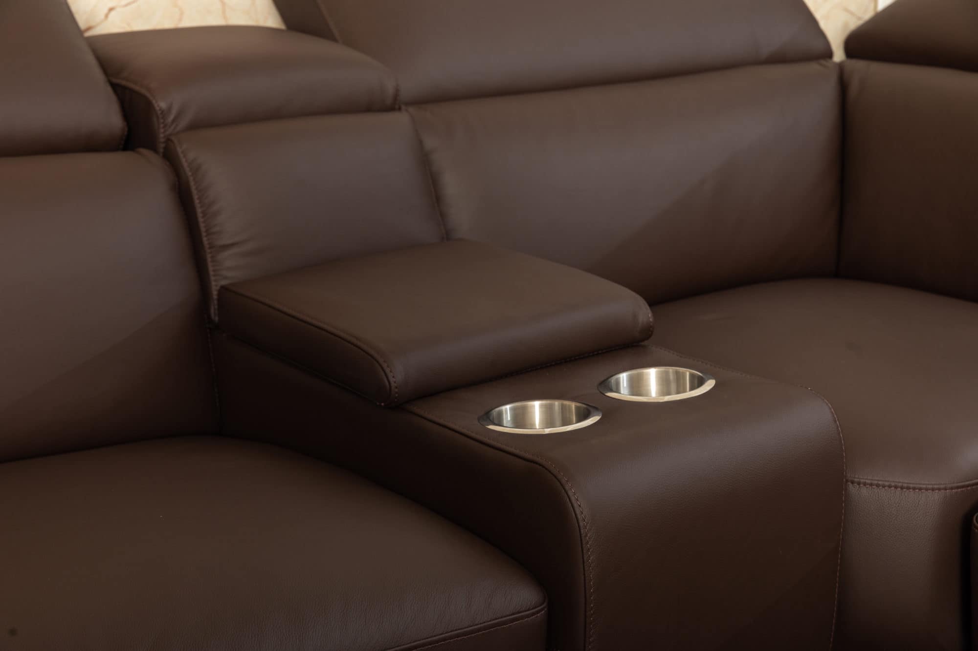 - Bệ Gác Tay & Để Ly Nước Tinh Tế: Tích hợp khu vực bệ gác tay kiêm bàn mini ở giữa, có thể dùng để ly nước, điều khiển TV, hoặc sách báo một cách gọn gàng và tiện lợi, giữ cho không gian luôn ngăn nắp